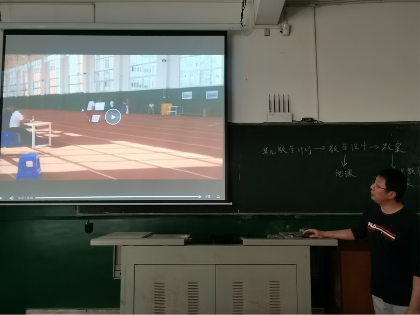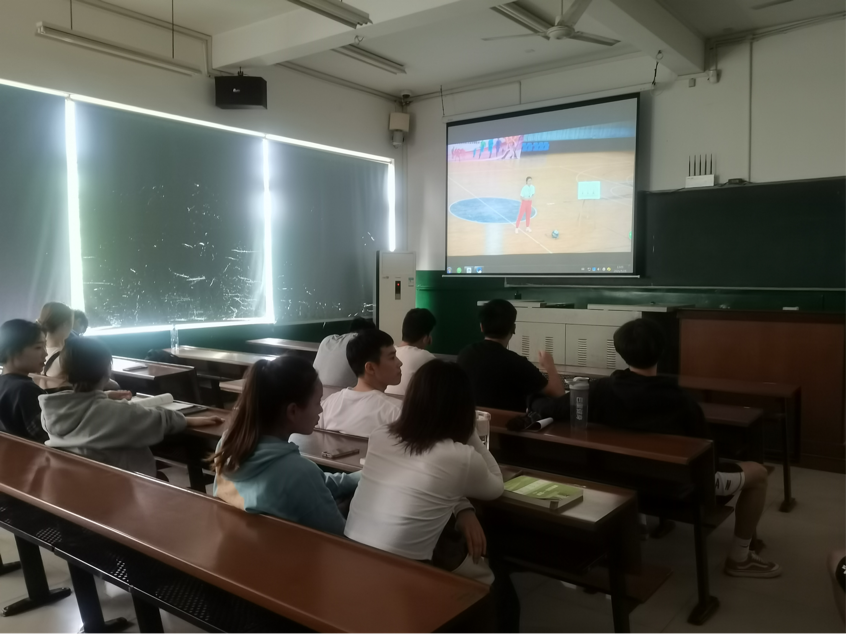随后,指导老师匡梨飞带领全队观看了师范生教师技能大赛视频,并耐心讲解了视频中参赛选手比赛中的细节与不足。其中特别强调:在教学中,老师应该信心饱满,口令嘹亮,在与学生交流时可以加上肢体语言,但在喊口令时老师必须做到立正等各种细节。