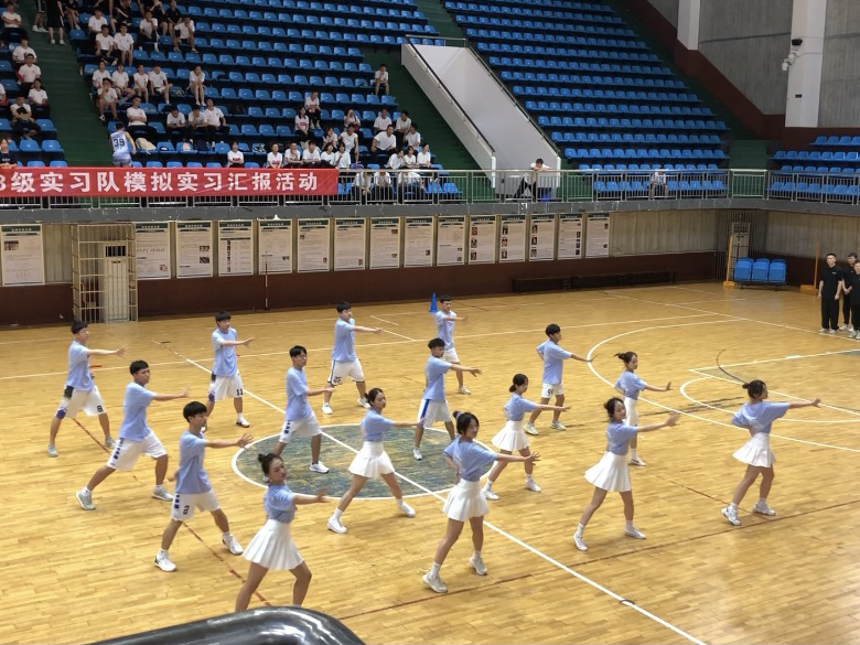 (通讯员 蒋妹 夏芷君)6月24日下午两点,我司举办2018级实习队模拟实习汇报活动,此次活动旨在提高各实习队参加模拟实习活动的积极性,并进一步提高模拟实习活动的效果;突出模拟实习的有效性与针对性;提高实习队员徒手操示范能力、口令指挥能力、比赛活动组织能力;加强各实习队之间的沟通与交流,全面提升我司各实习队队员的教师素养与个人能力。莅临本次活动的领导有:我司汤长发院长、刘花云副院长以及体操教研室、教务办、各实习队指导老师。