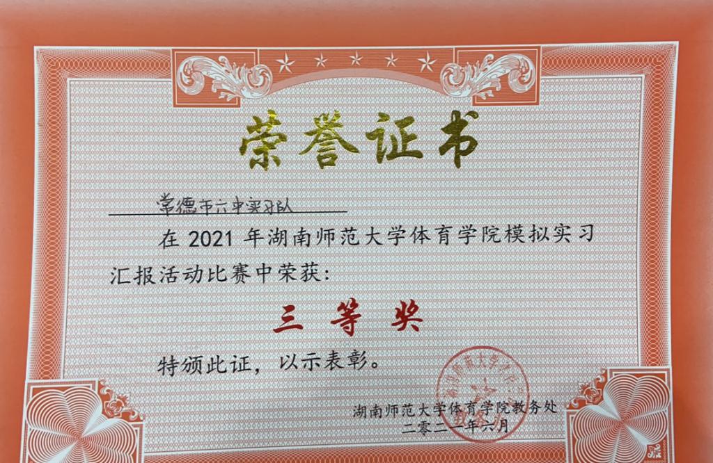 最后,我队在此次汇报活动中荣获三等奖。不论是自编操比赛还是跳绳比赛,队员们都十分认真,共同为打造一个好的团队而努力。这次活动很好的汇聚了实习队的团队精神,加强了队员之间的沟通,更是培养了队员们拼搏的精神与积极的态度。相信在以后的实习生活中,大家都能更上一层楼。