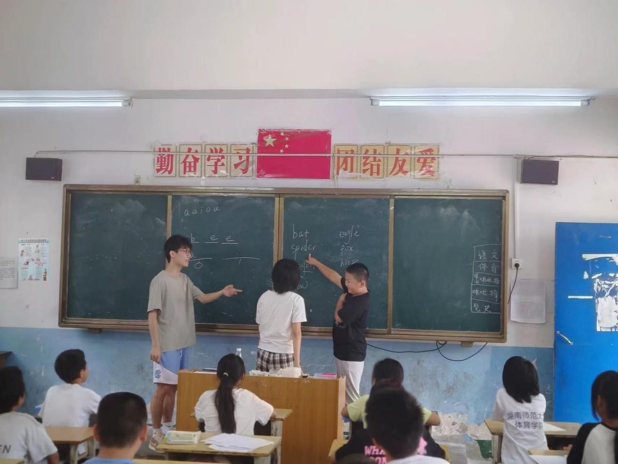 (通讯员:倪泽楠 蔡林希 倪梦芸 张梓扬)7月7日,yl23455永利官网“领梦者”暑期实践团在渣坪九年一贯制学校开设了一堂别开生面的趣味英语课,这次的英语课堂不同于传统的课堂模式,队员们带来了丰富多彩的趣味教学活动,以游戏为主的互动教学方式,为渣坪九年一贯制学校的同学们带来了不一样的学习体验。在课堂上,队员们通过精心设计的游戏活动,将英语单词、句子等知识融入其中。通过互动的形式让学习变得更加生动有趣,同时也提高了同学们的记忆能力和语感。