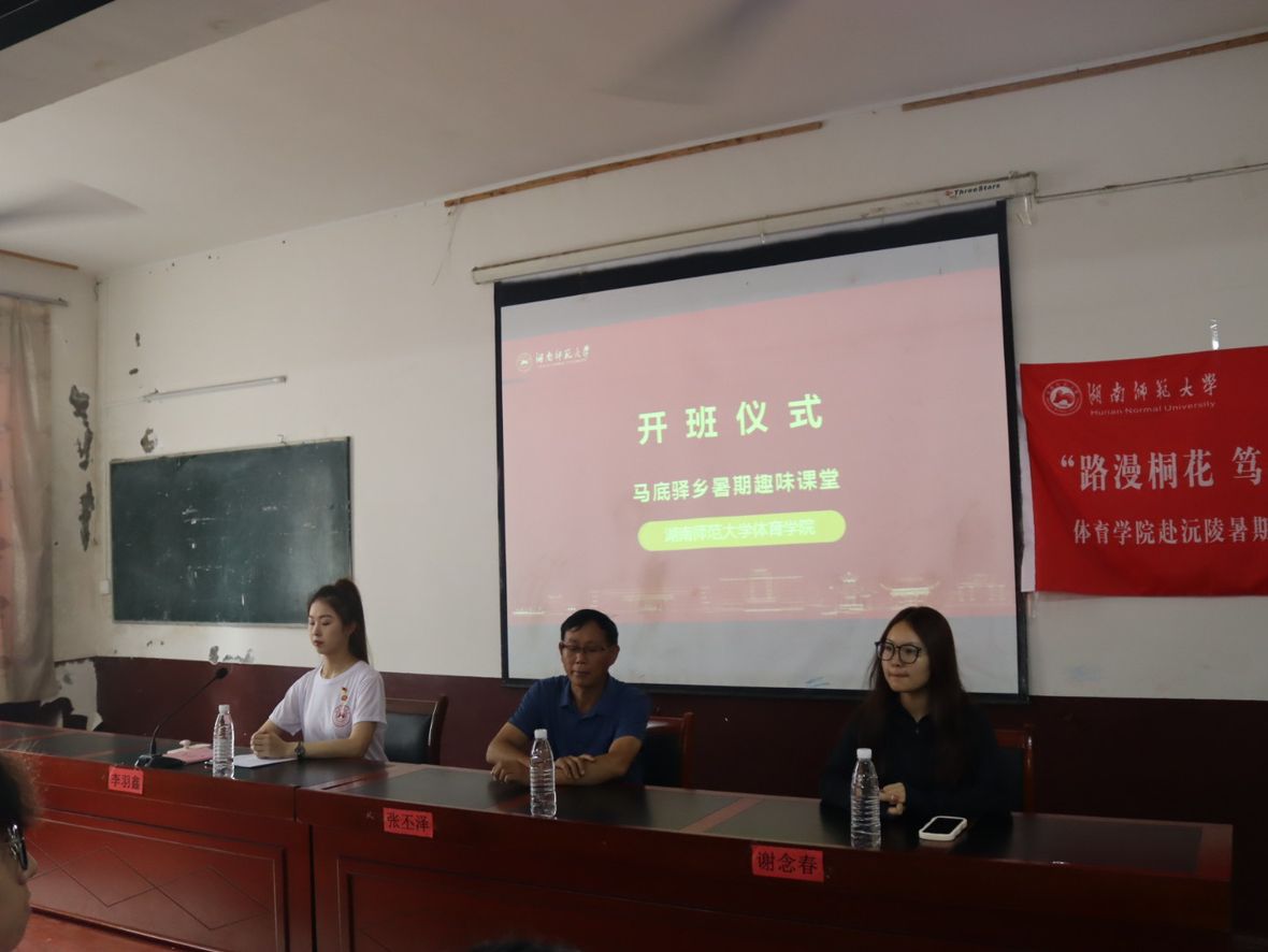 (通讯员:王璇,郑玉璞)2023年7月10日上午,yl23455永利官网“路漫桐花,笃行万里”赴沅陵暑期社会实践团在马底驿乡九年一贯制学校多媒体教室举行暑期“三下乡”实践活动开班仪式。马底驿乡九年一贯制学校党支部副书记张丕泽、教研专干谢念春、yl23455永利官网2022级辅导员李羽鑫出席此次开班仪式,实践团全体成员参加仪式,实践团副队长肖恩主持仪式。