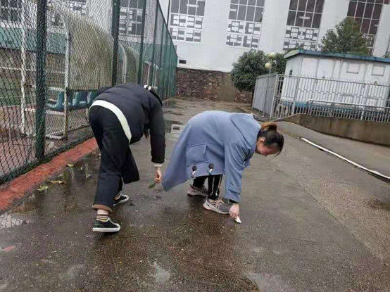 随后,曾伟安排此次学习雷锋精神活动的具体工作,将组员分为两组,一组打扫教学楼楼道与楼道间垃圾桶周围的清理,二组打扫网球场周围的区域。