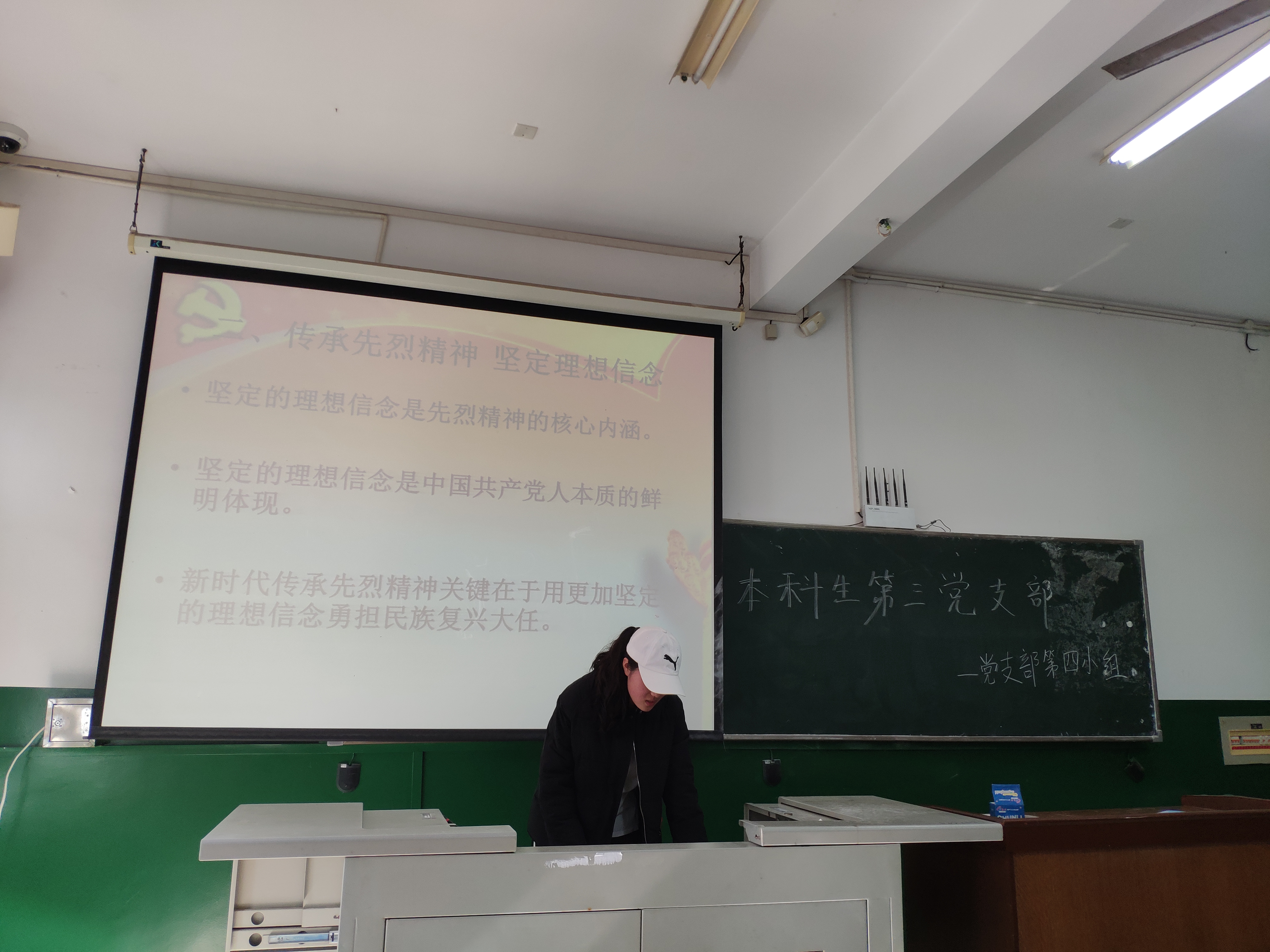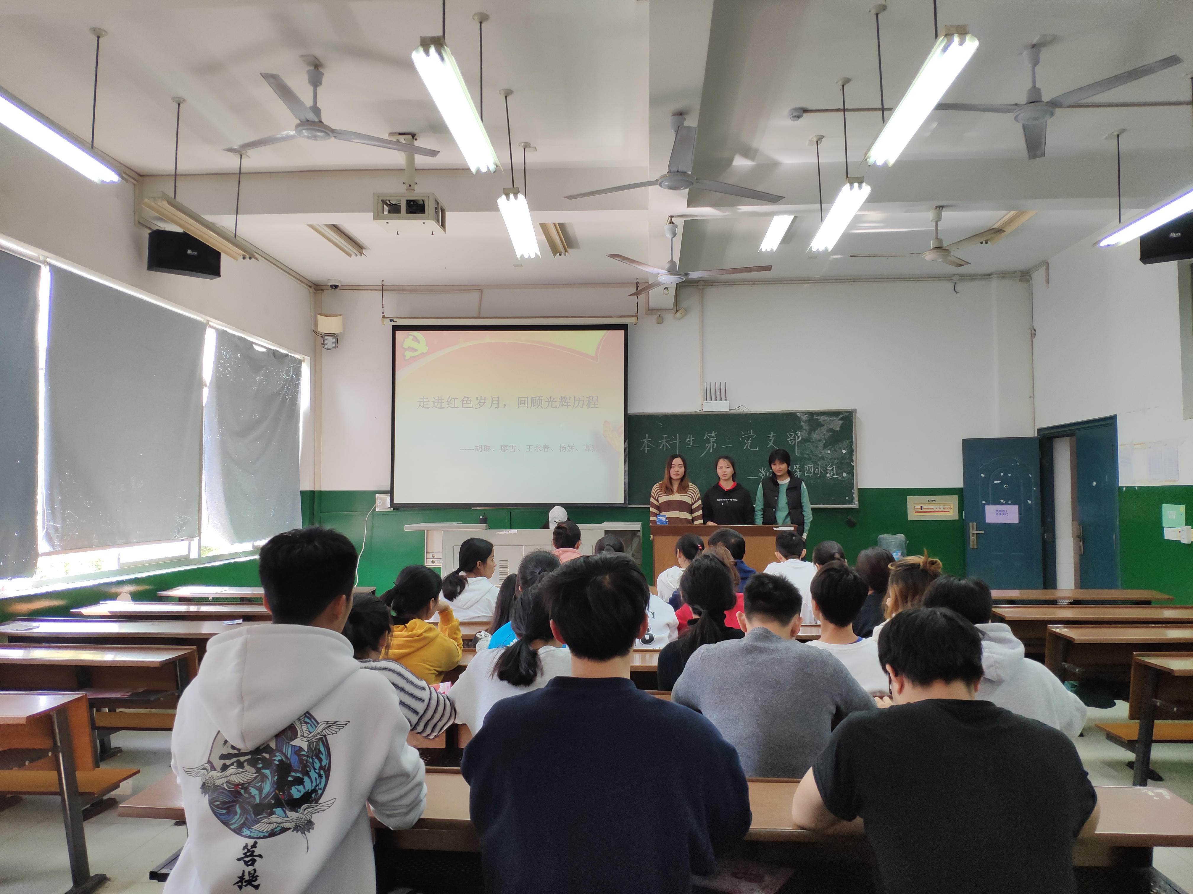 随后,第四组的谭燕蓉同学对PPT进行了讲解,并带领同学们学习了党史。学习党史有利于进一步坚定理想信念,牢固树立正确的世界观、人生观、价值观,让大家始终保持清醒头脑,同时鞭策自己矢志不渝地跟党走。