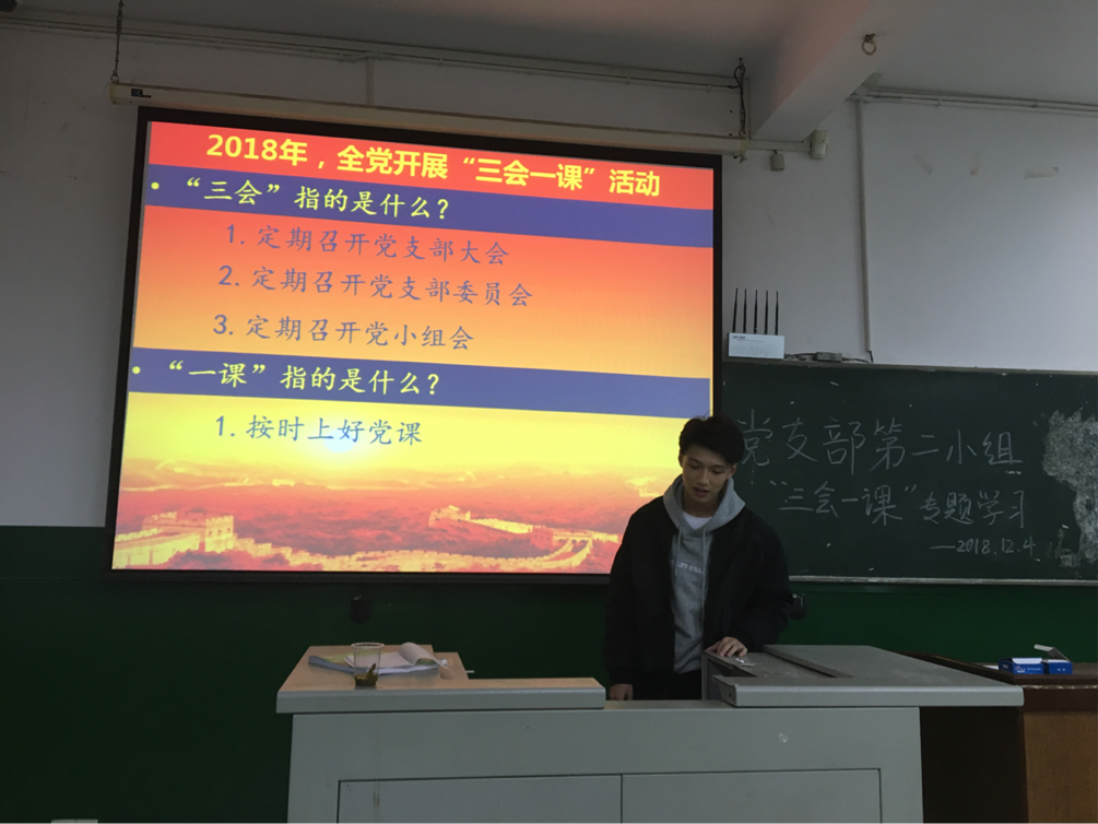 会议伊始,全组成员观看了有关“三会一课”专题的有关视频,视频内容与中国新特色社会主义中心思想相符合,使全组成员更加了解“三会一课”的意义及内涵、了解了我党的先进思想以及坚定了入党的决心和信念!