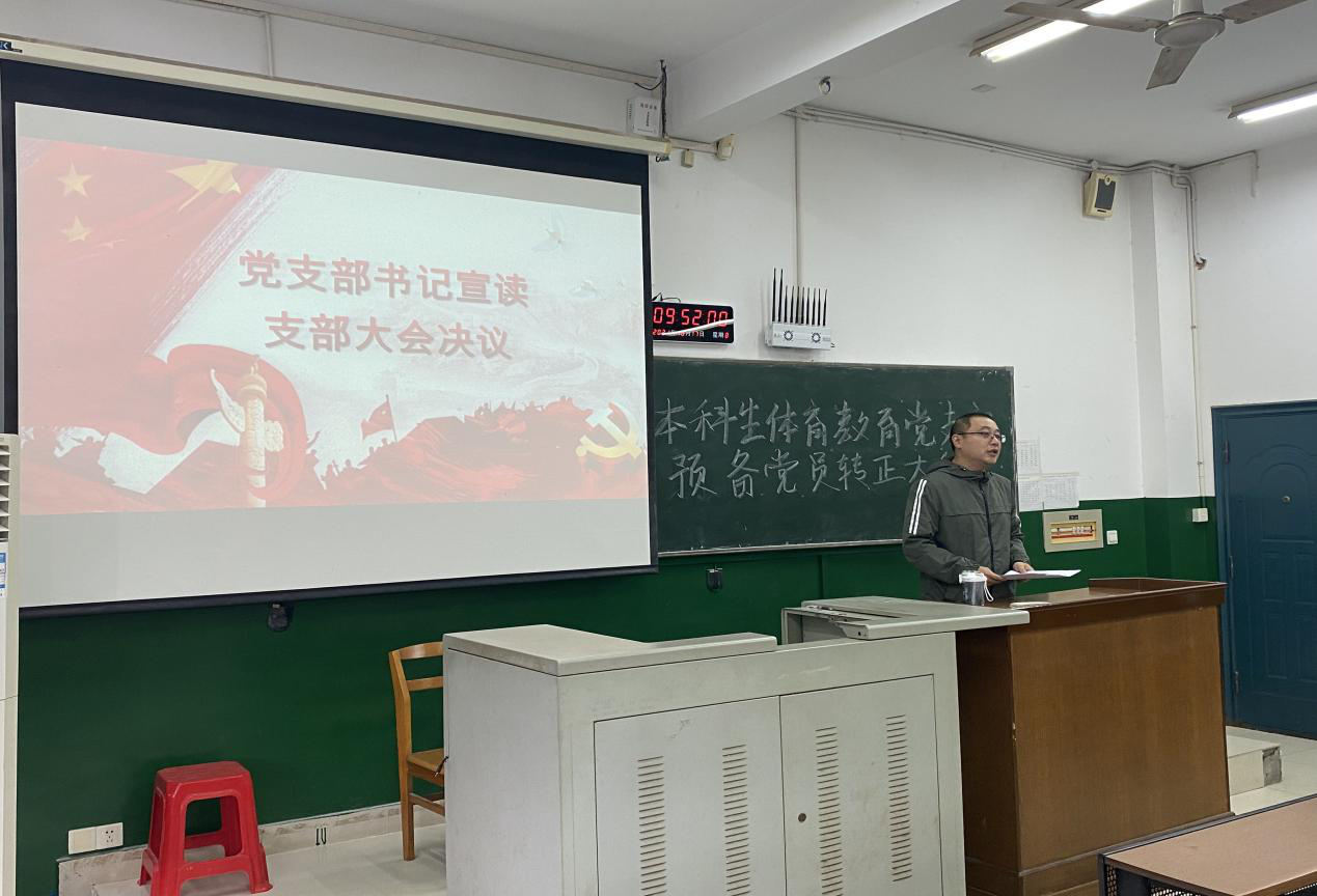 (通讯员 艾新平)10月17日上午,我司召开本科生体育教育党支部预备党员转正大会,我司学工办主任夏禹出席此次会议,参加此次会议成员共有38人,其中在常德实习的成员以视频会议的形式参加,新转正的党员有6人。本次会议由2018级中外体育教育专业李羽鑫主持。