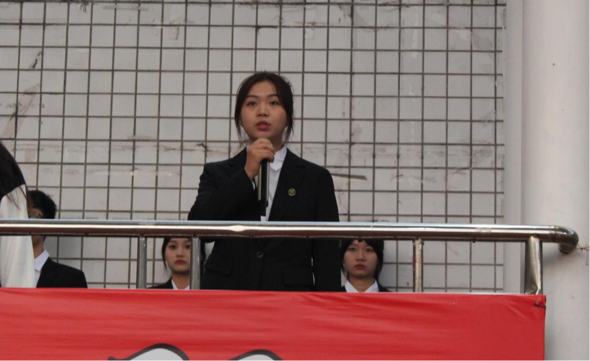 来自2024级运动训练专业跆拳道班的张景怡同学,进行《举手投足间,文明在身边》的主题演讲。她呼吁同学们从小事做起,一起行动,维护和传播文明。