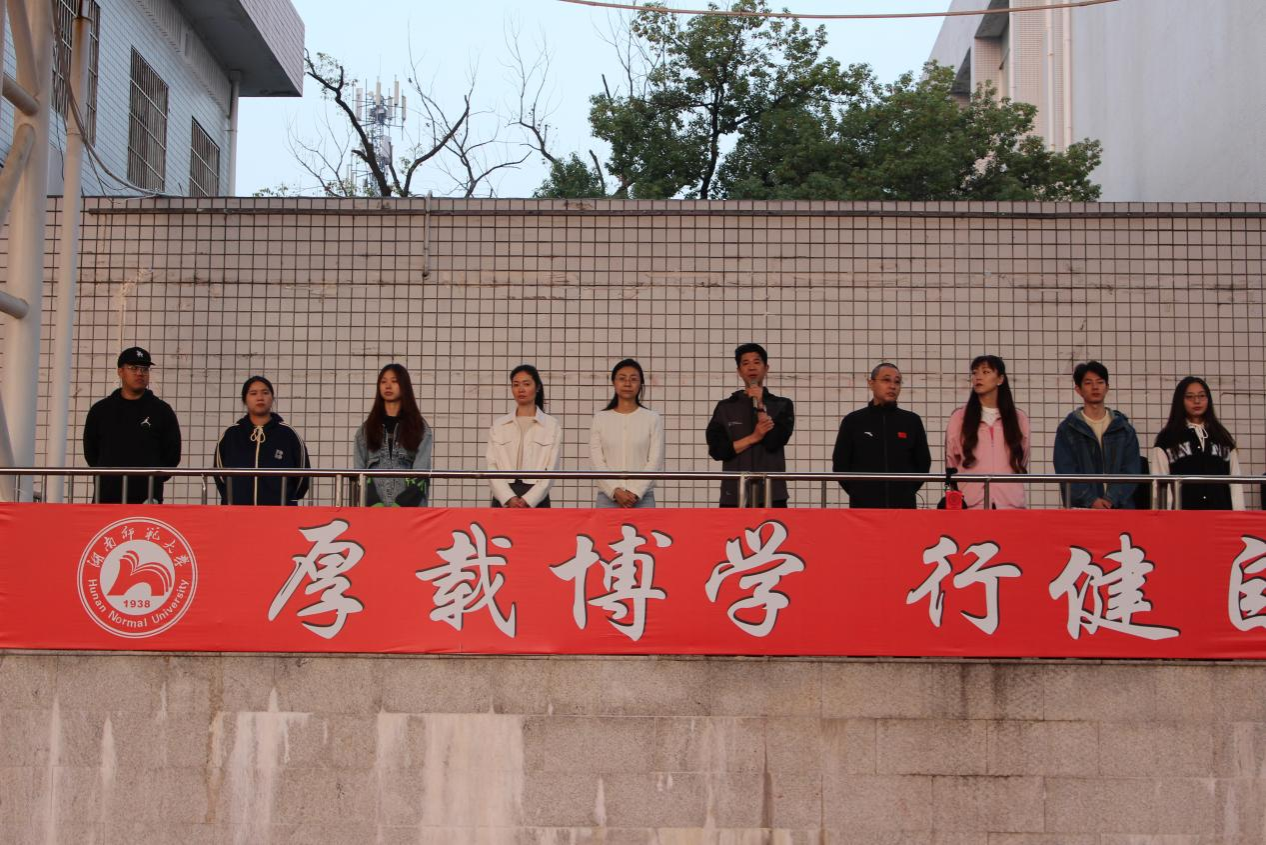 (通讯员:吴爽)11月11日早,我司于田径场举行了2024-2025学年上学期第十一周升旗仪式。yl23455永利官网党委副书记李皓、学工办主任夏禹、团委书记王静、学工办副主任李丽、2022级辅导员陈玲和李羽鑫、2023级辅导员梁一然和伍艾、2024级辅导员孔祥蕊和张宇桁出席本次升旗仪式,2022、2023、2024级全体本科生参加此次升旗仪式。