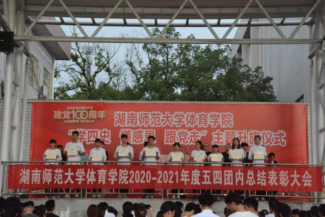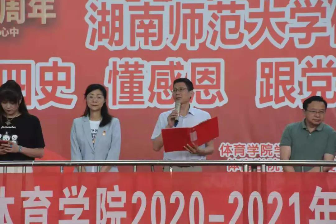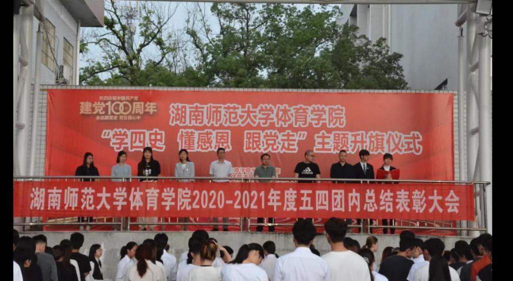 2019级获奖学生代表范一凡作国旗下演讲,一、他时刻各位老师和各位伙伴们给予的支持和帮助。二、在工作中不断学习,在学习中不断成长。在变优秀的路上遇到了一群志同道合的朋友。三、呼吁大家将袁老的精神放在心头,牢记使命和担当,以苦干实干精神为航,一起乘风破浪,奋勇前进,谱写出属于我们体院学子的绚丽篇章。