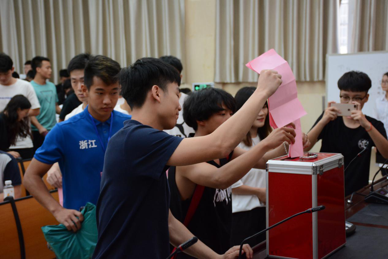 学生代表、团员代表进行投票选举,由检票组、记票组、唱票组成员共同统计票数,以保投票情况公正无误。