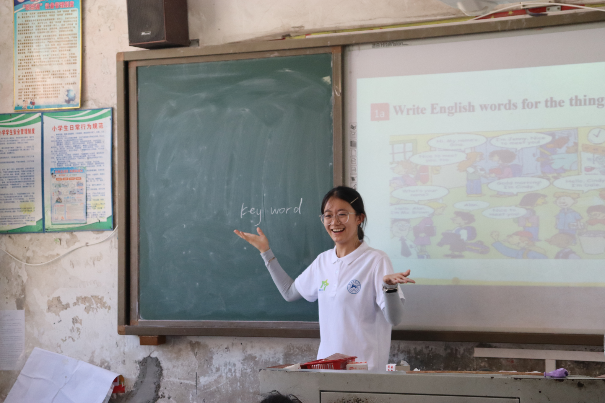 与此同时,另一场以“What's Your Name?——开启交流之旅”为主题的“英语趣探营”活动也在该校如火如荼地进行。实践团成员刘旋通过创意无限的角色扮演、生动有趣的情景模拟等互动环节,引导学生们用英语进行自我介绍和日常交流。学生们在轻松愉快的氛围中掌握了英语表达技巧,拓宽了国际视野。一位学生兴奋地说:“这堂英语课太棒了!我交到了许多新朋友,用英语分享彼此的名字和故事,感觉学习英语变得轻松又有趣!”