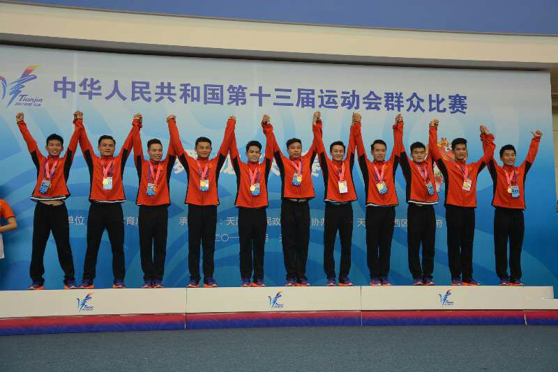 (供稿 校舞龙队)7月9日,第十三届全运会群众比赛舞龙项目决赛在北京师范大学天津附属中学举行。经过激烈角逐,以我司舞龙队为班底组建的湖南省代表队脱颖而出,获得舞龙自选套路冠军,传统套路季军的佳绩,这是湖南省代表团在本届全运会上获得的首枚金牌。