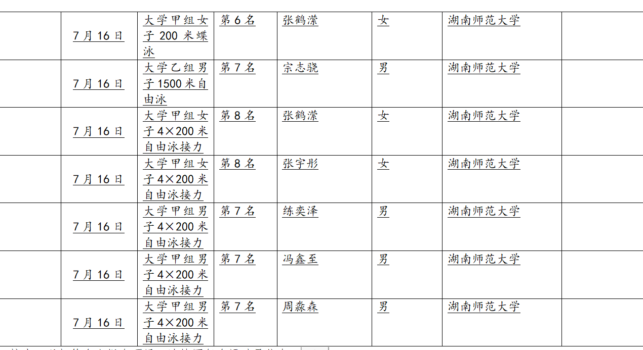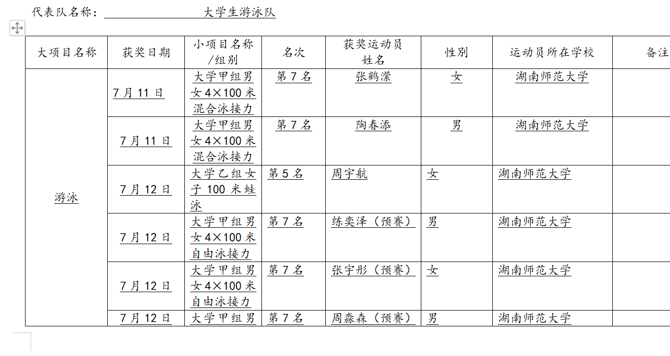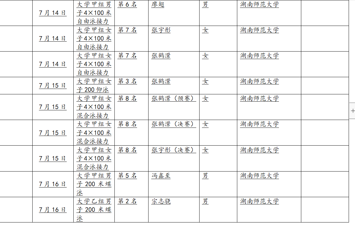 我司代表队在校领导和院领导的大力支持下,征战学运会赛场,同时也代表湖南省大学组参赛。战鼓擂响,旗帜飘扬,运动健儿们始终坚持着“厚载博学、行健自强”的体院精神,奋力拼搏,不畏强手,奋勇争先,不仅表现了高超的竞技水平和大学生的精神风貌,更展现出湖师大学子的傲人风采,续写了我司体育新的篇章!在此由衷的感谢领导的大力支持,佳绩的背后离不开领导和老师的关怀与帮助。以梦为马,不负韶华,体院学子将继续秉持师大精神砥砺前行,再创辉煌!