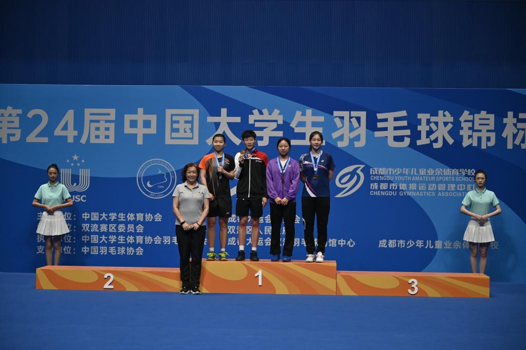 我司羽毛球队在领队郑澜副院长与赵哲主教练的带队下,共选派8名高水平运动员参加此次比赛。在教练团队的精心带领与悉心指导下,运动员秉承着“仁爱精勤”的校训精神,顽强拼搏、力克强敌、砥砺前行,最终获得一银一铜的佳绩。