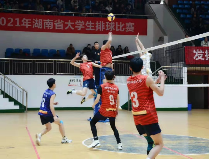 12月9日,我司男排与中南大学在决赛相遇,第一局比赛我司以25比21拿下首局。
