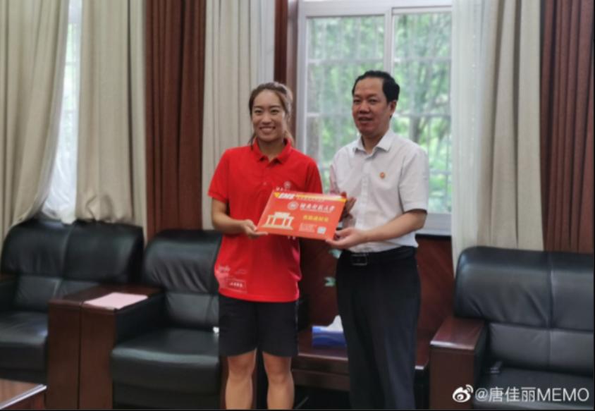 唐佳丽向学校赠送签名球衣