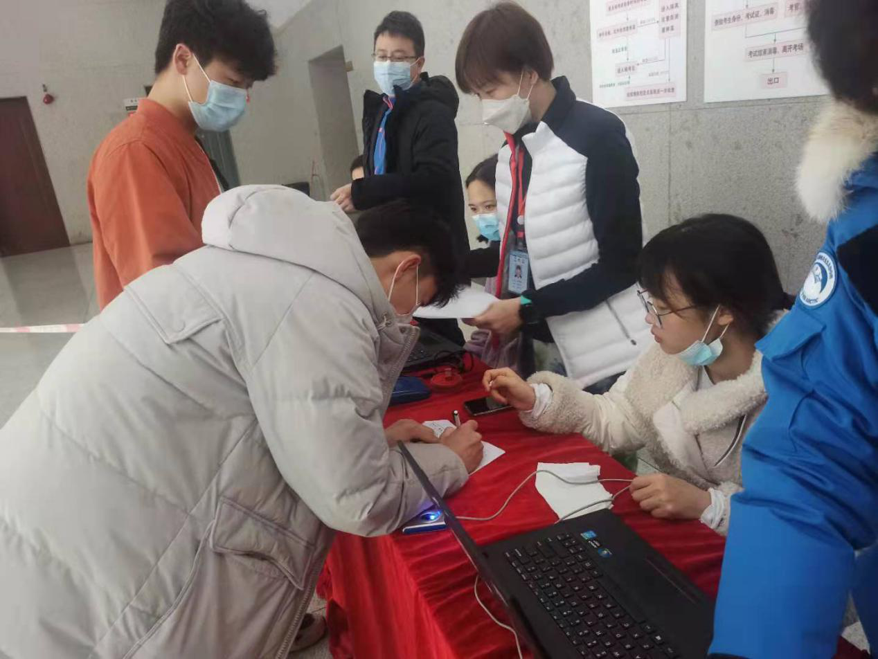 上午八时,参加今年第一批次考试的考生陆续来到报名现场进行实名认证,开展了检测体温及采集指纹等必要流程。尽管考生人数众多,但报名现场依旧秩序井然。根据疫情防控需要,要求考生务必保持安全距离、规范佩戴口罩、出示健康码并上交《体温测量登记表》及《考生安全考试承诺书》,考前关注湖南省居民健康卡公众号申领电子健康卡,凭绿码报到参考。考务人员各司其职,用积极、严谨、细致的工作态度顺利完成本次考生报名工作。