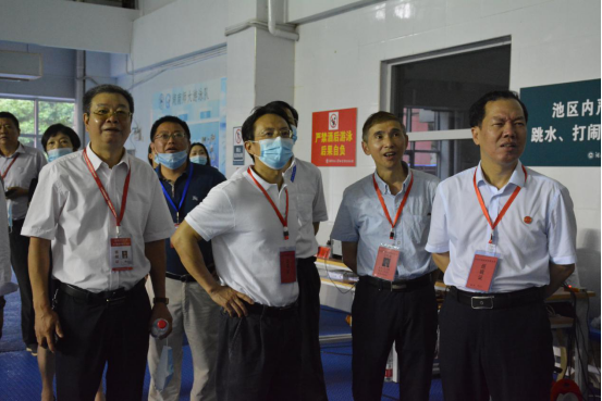 王瑰曙一行逐一深入篮球场、武术馆、田径场、游泳馆、监控中心等场地,查看了组考安排、设备运行、考试流程、考生备考等情况,听取了相关工作人员在防疫物资储备、组考工作统筹、应急预案应用等方面的工作汇报。王瑰曙充分肯定了我司组考工作,并对我司所有考务人员的辛勤付出表示感谢。他希望我司进一步加强组考管理、完善后勤服务、保障考生权益,力求疫情防控体系下此次体育高考圆满落幕。