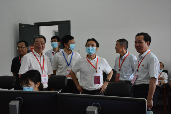 (通讯员 黄慧清 余友)近日,由我司承担的2020年湖南省体育高考进行到第四批次,各项组考工作有序进行。6月8日下午,省教育厅党组副书记、副厅长王瑰曙,省教育考试院党委书记罗桂香、院长唐未兵、总工程师吴德平、省教育厅学生处处长黄杨清等来我司视察2020年湖南省体育高考工作情况。我司校长刘起军、副校长周俊武、纪委书记唐贤清等陪同考察。