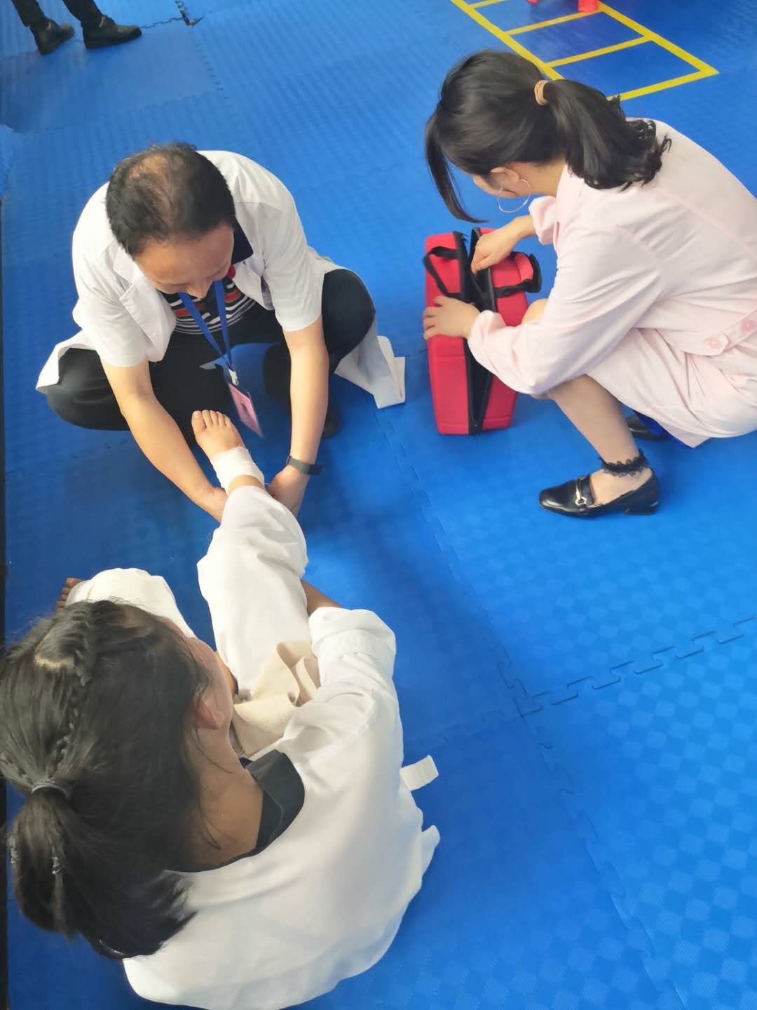 (通讯员 黄慧清 余友)6月6日下午,来自岳阳平江县第二中学的应届考生汤慧在2020湖南省第三批次体育高考的跆拳道专项考试中不慎受伤。得知该情况后,我司考务人员立即执行考生受伤应急预案,第一时间将汤慧轻抬至休息区。医护人员即刻到达,紧急处理其扭伤的踝关节,最大限度、最快速度控制住了考生伤势。我司副院长刘花云及相关考务人员全程陪护,所有救护人员一切从考生出发,一切为考生着想,不断鼓励汤慧,全程关注其身体及心理健康。