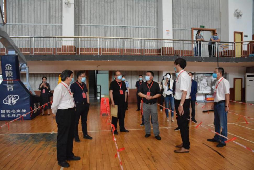 吴德平等一行先后视察了报名点、篮球馆、跆拳道馆、检录点、田径场、足球场等体考场地。卫生优质的体育场地、即时滚动播报考场检录及考试信息的液晶显示屏、完善的体考设备,保障了体考的科学有序。由于疫情影响,今年在以往体育高考工作筹备的基础上增加了考前测温、口罩规范佩戴教学、考试设备、场地按时定期消毒等环节,确保了疫情下体育高考的安全性、科学性。