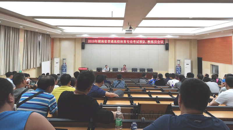 (通讯员 陈燕 陈俊豪)4月19日,2019年湖南省普通高校招生体育专业考试进入第四批次。晚上7:30,该批次领队、教练员会议在我司鸿健楼一楼阶梯教室如期召开。院长汤长发、党委副书记李波出席了会议。