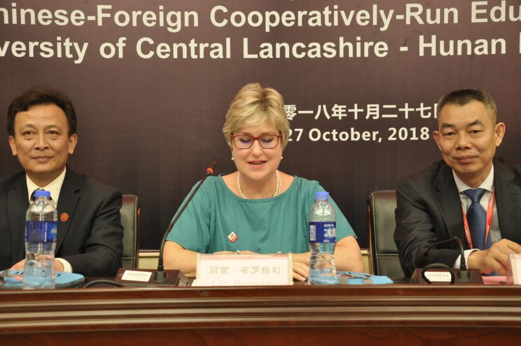 丽兹•布罗姆利作为英方代表向新生致词,她向中方各位领导以及教职人员为此次合作付出的决心和努力表示感谢。她指出中外合作办学是一个激动人心、充满挑战、雄心勃勃的旅程的开始。她希望与合作伙伴一起,通过面向就业的国际课程,进行启迪教学和学习,为未来领袖提供教育、为毕业生找到立身之本、为开创职业生涯做好准备,同时她还希望这段旅程能够随着时间的推移而继续向前,并能够在某种程度上支持中国政府发展体育和足球的雄心壮志。