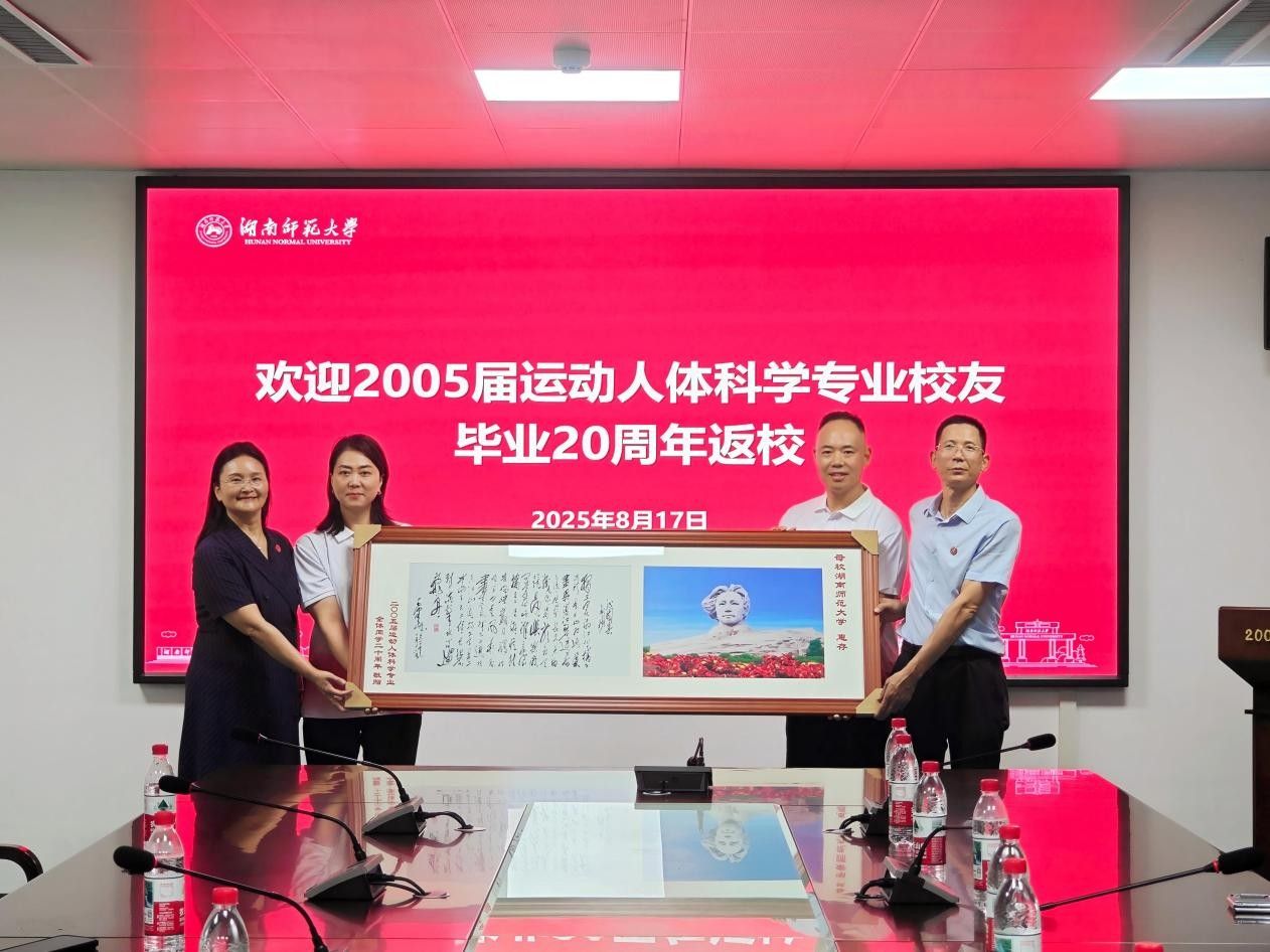 活动最后,2005届校友代表向学院捐赠了一幅精美的湘绣作品,表达对母校的深厚情谊和美好祝愿。学院领导接受捐赠并表示感谢,强调这份礼物不仅承载着校友们的感恩之心,更象征着校友与母校之间紧密的联系。