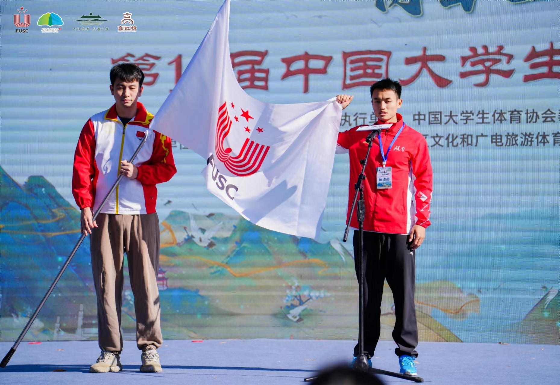 11月1日,在杭州市临安区高虹镇龙门秘境景区举行的第19届中国大学生攀岩锦标赛速度决赛中,我司2021级运动训练专业学生龙金宝,在国手如云的男子丙组(高水平组)中勇夺金牌,为我司赢得荣誉、争得光彩。除了赛场上的高光时刻,龙金宝还在开幕式上作为参赛运动员代表进行宣誓。