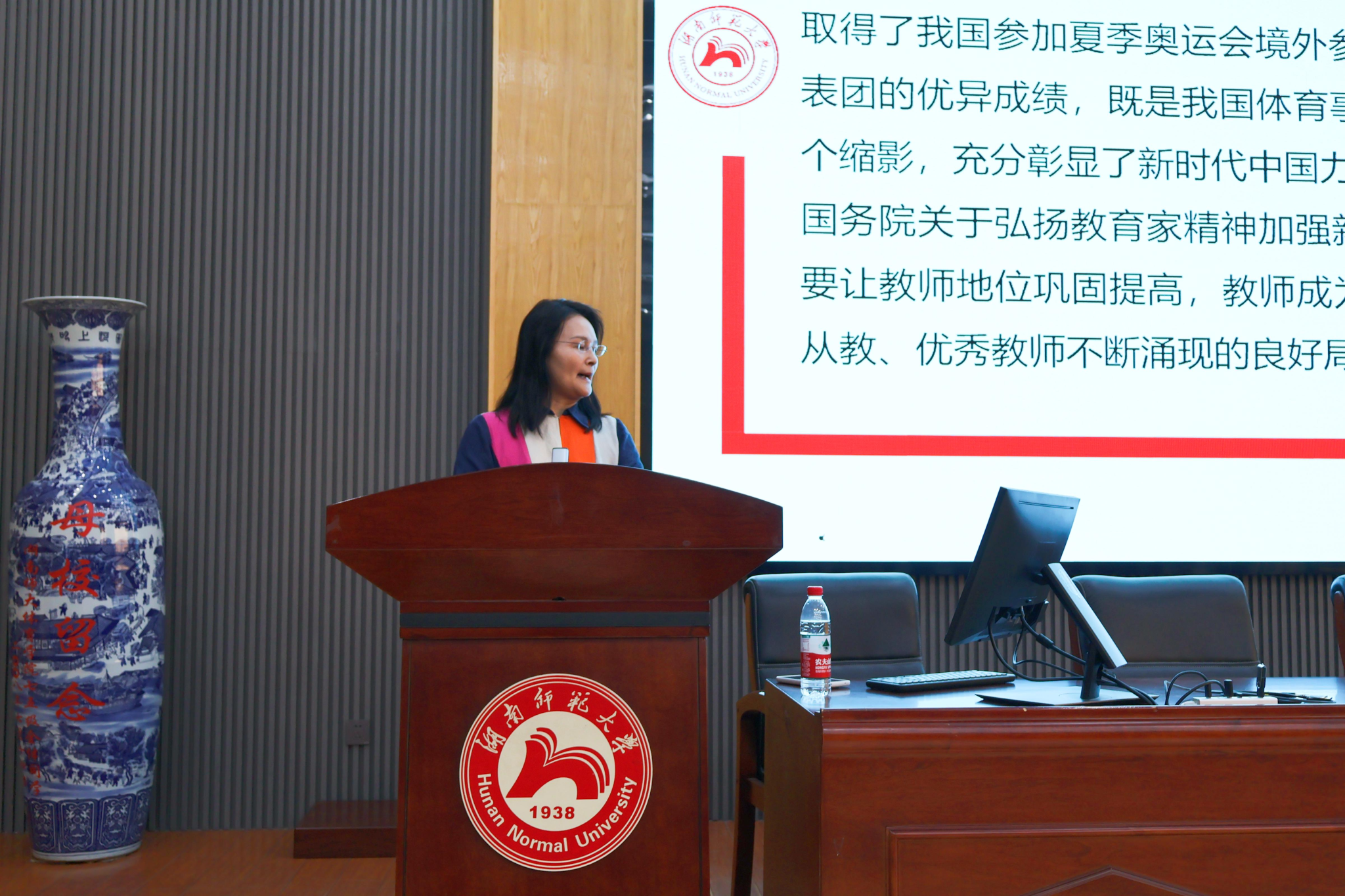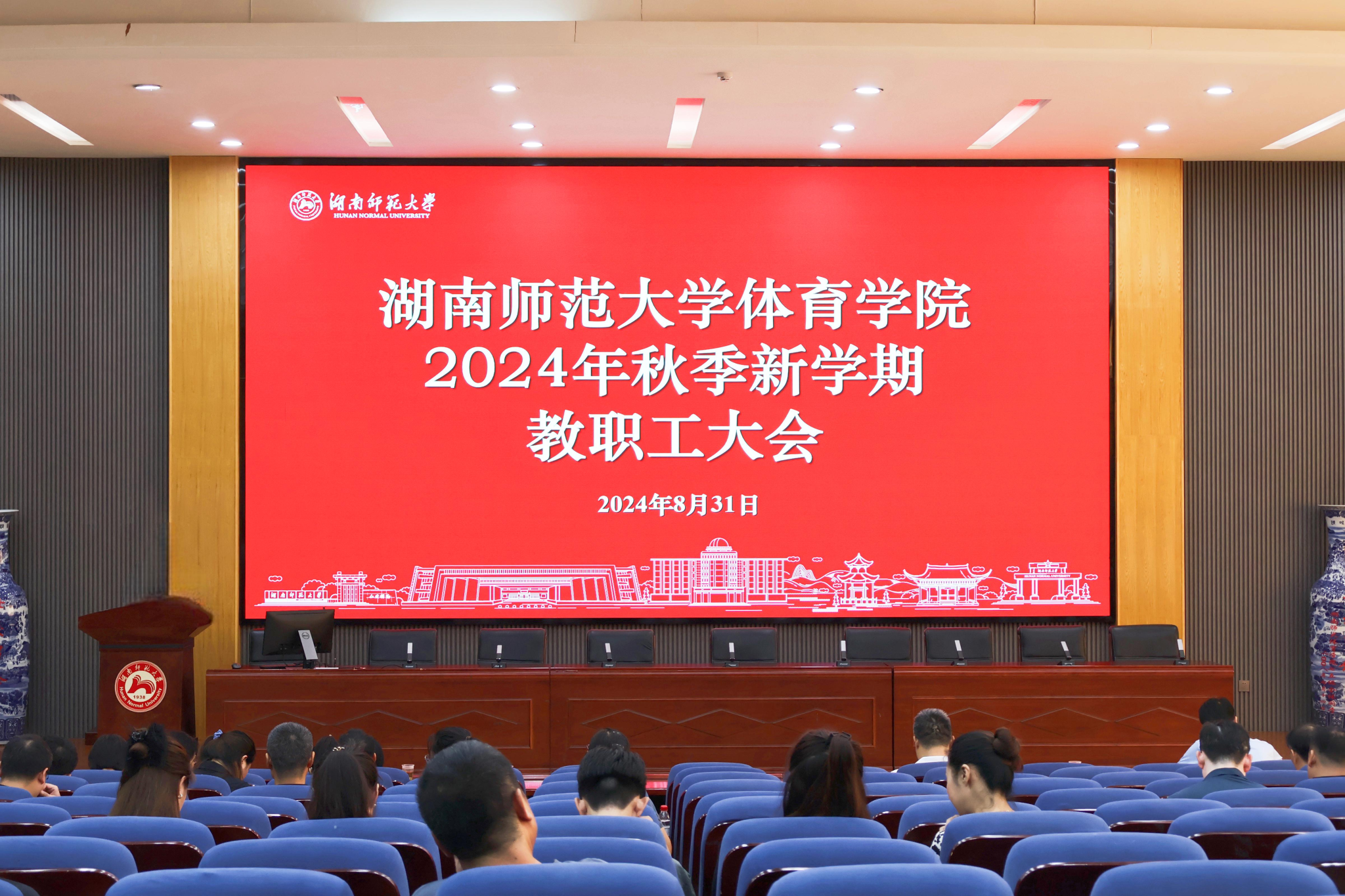 郑澜院长作《弘扬教育家精神,勇担体育强国使命》新学期工作报告,她全面总结了暑假期间的学院学科、人事、教学与教研、中英合作办学和外事、科研、人才培养、群体竞赛、行政后勤等方面工作,并详细部署了人事和科研、教学、合作办学和国际交流、实验室建设、群体竞赛、行政后勤服务等新学期重点工作,强调一要做好学科建设长远规划,充分总结学科建设取得的成绩,高质量打造高峰学科,坚持原始创新,高质量提升科研水平;二要优化队伍,聚集一流人才资源,打造高素质人才队伍建设体系;三要深化机制体制改革,以新质生产力促进学院高质量发展;四要坚持高质量高标准,确保课程和教学资源提质增效,建立完善专业动态调整机制,将建设一流专业作为办好一流本科教育、培养一流本科人才的着力点,不断聚焦内涵建设。