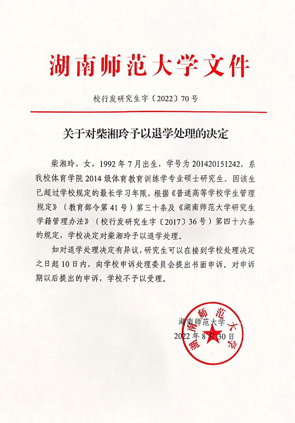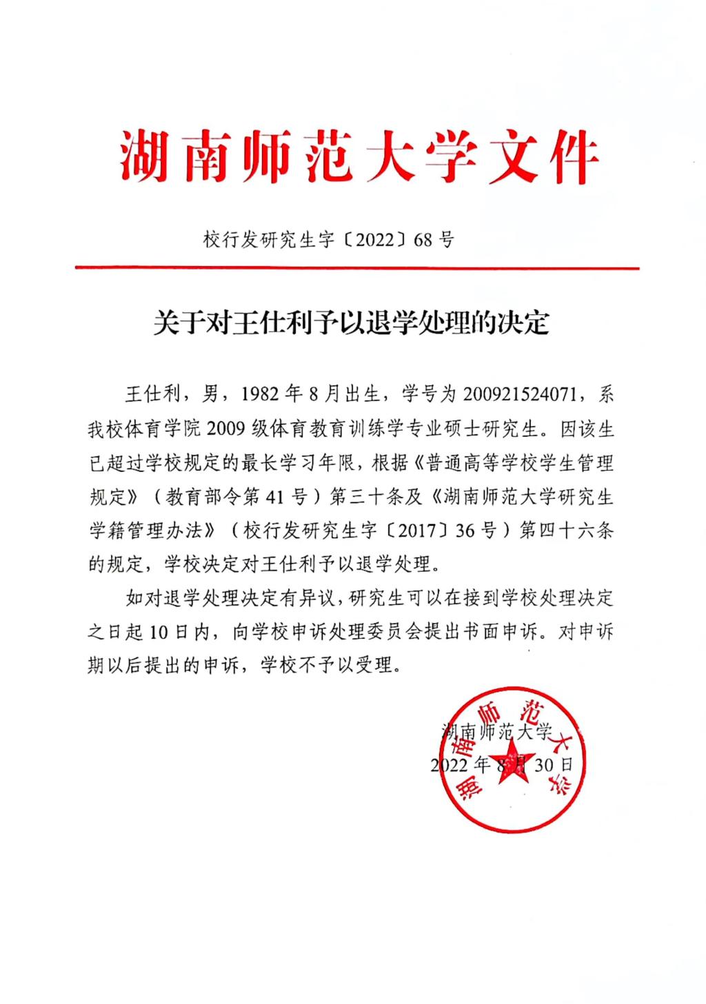 由于无法联系到王仕利、柴湘玲本人,也无法找到邮寄地址,所以在yl23455永利官网网站予以公示。根据研究生管理办法第九条规定,自发布公告之日起,经过60日即视为送达,公示期为2022年9月21日—2022年11月19日。