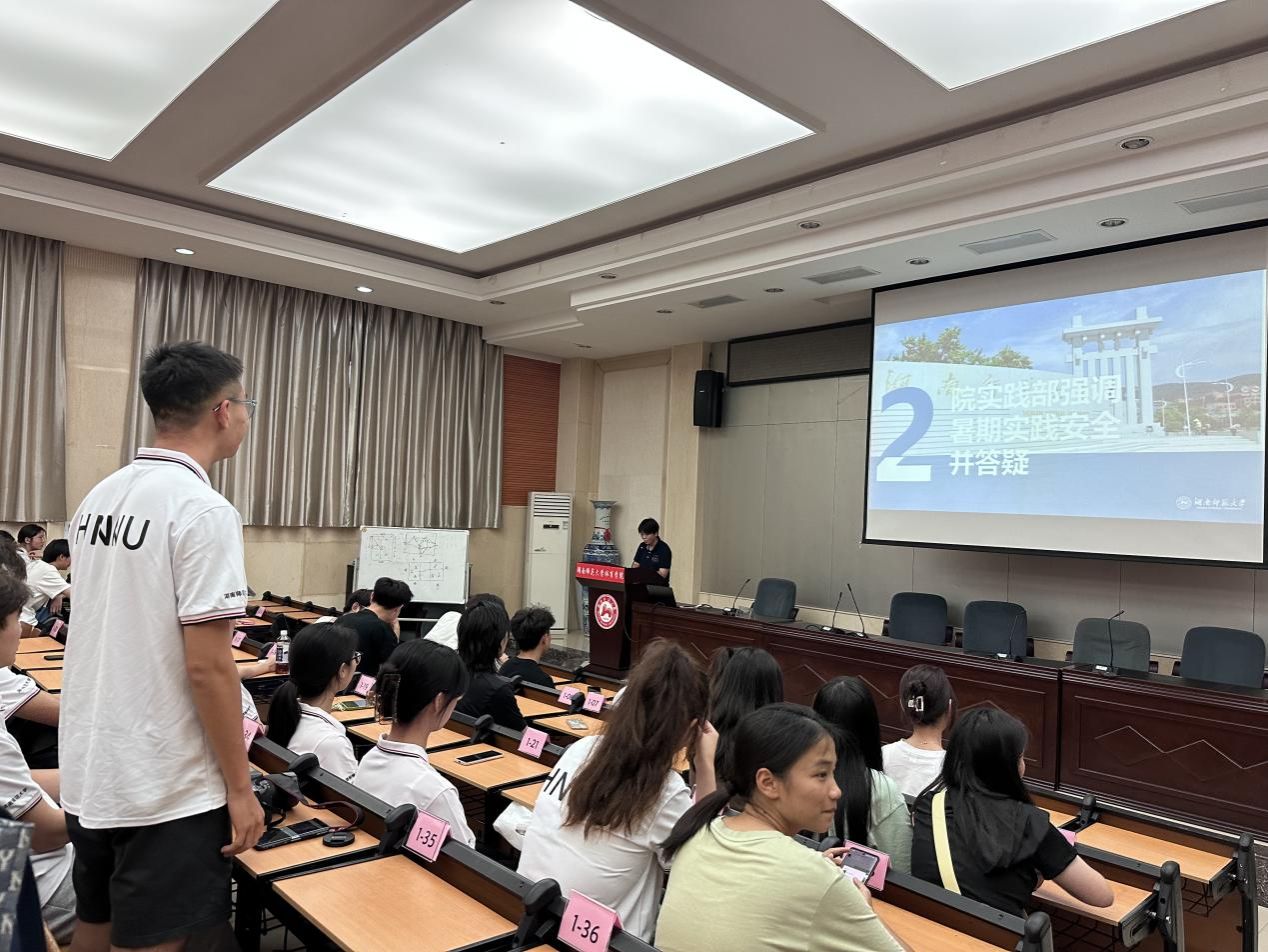 (通讯员:蒋诗棋)6月30日下午,我司于鸿健楼一楼阶梯教室举行2023年度暑期社会实践活动启动仪式暨安全培训会议,院团委书记王静、2022级辅导员陈玲、2020级辅导员陈凤、2022级辅导员李羽鑫出席本次会议,各三下乡队伍成员、学院各年级代表参加本次会议。会议由甄梦琦主持。