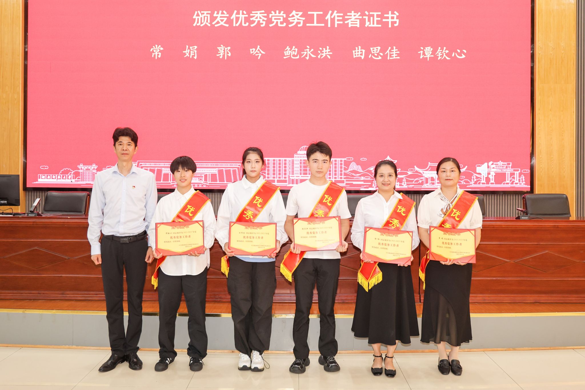 优秀党务工作者: 常娟、郭吟、鲍永洪、曲思佳、谭钦心。