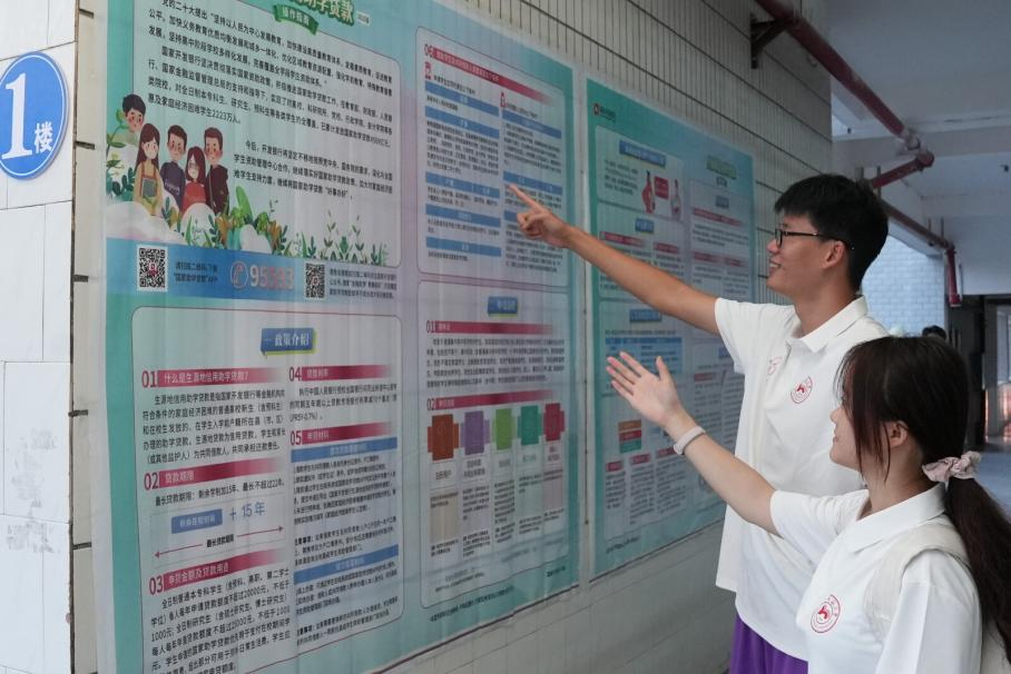 图为实践团成员参观该校生源地助学贷款介绍 杨蔚洲供图