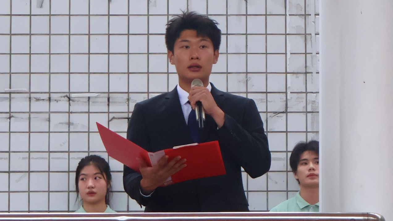 2023级运动训练专业足球3班的程雪,以“少年当存凌云志,不负青春正当时”为题作国旗下演讲。她结合《人民日报》言论及习近平总书记对新时代青年的要求,强调树立远大理想的重要性,并针对不同年级学生点明新学期意义,提出三点成长践行方向:一是明确目标、笃行落实;二是博采众长、厚积薄发;三是修身立德、坚守初心。最后,她向全体师生致以美好祝愿。